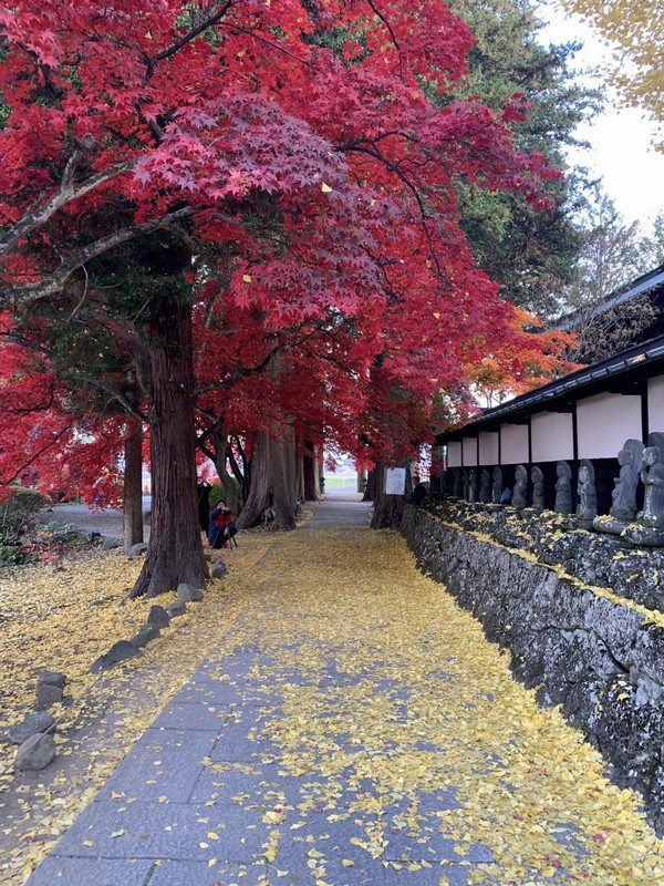 - 一行寺椛の紅葉と黄金色の大イチョウの対比が鮮やかな長円寺で信州の秋を満喫!