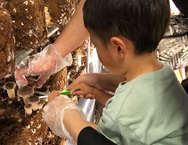 - 純国産菌床しいたけを収穫体験!(お一人様500g以上をお持ち帰りできます)