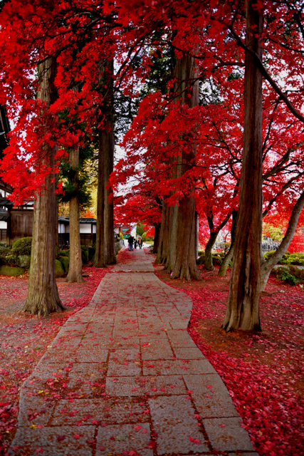 信州のもみじ寺・長円寺参道「紅葉のトンネル」と