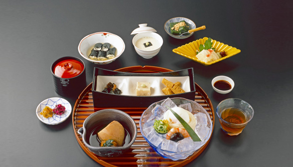 京料理「筍亭」は、旬の味覚と癒しの空間。洛西の竹林と彩に囲まれた静かなかくれ里。都会を離れ、自家栽培された筍をはじめ四季の食材と味覚をお楽しみいただけるように「開運御膳」をご用意しました。
