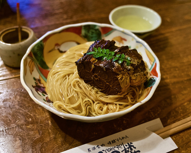 北国街道沿いに続く古い街並の一角にある総称「黒壁スクエア」。明治時代から黒壁銀行の愛称で親しまれた古い銀行を改装した「黒壁ガラス館」を中心に、ガラスショップや工房、ギャラリー、体験教室、レストランやカフェなど魅力あふれるお店が、古い街並の中に点在しています。この黒壁スクエア近隣の参画店舗の中から行きたいお店を選んでお食事できるクーポンをご用意しました。各お店でメニューが指定されていますので、お好みのお店へお出かけください。(画像は長浜名物・焼鯖そうめん)