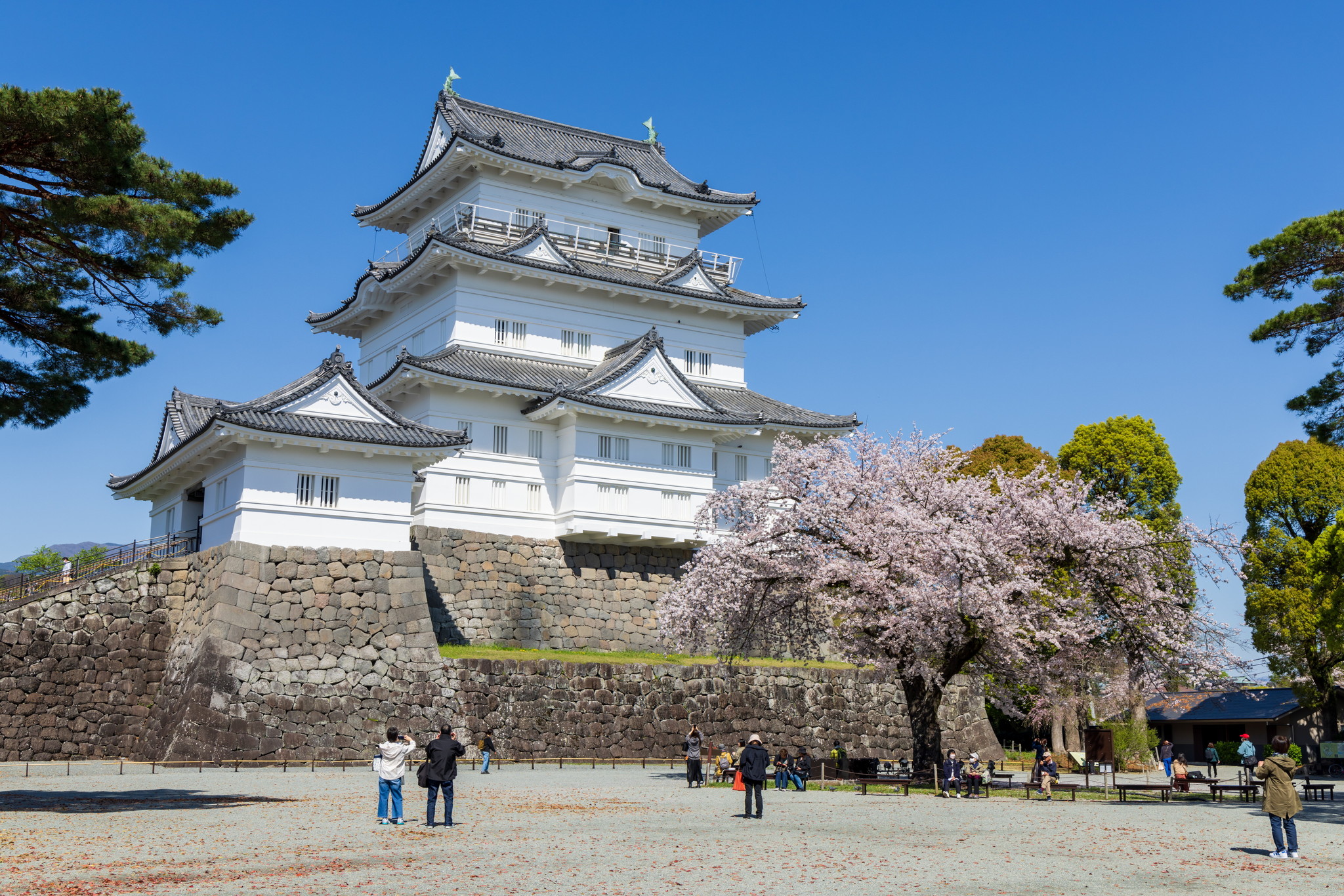 小田原城天守閣やお堀などを背景に、約300本のソメイヨシノが春爛漫に咲き誇り、城と桜の美しいコラボレーションを楽しむことができます。