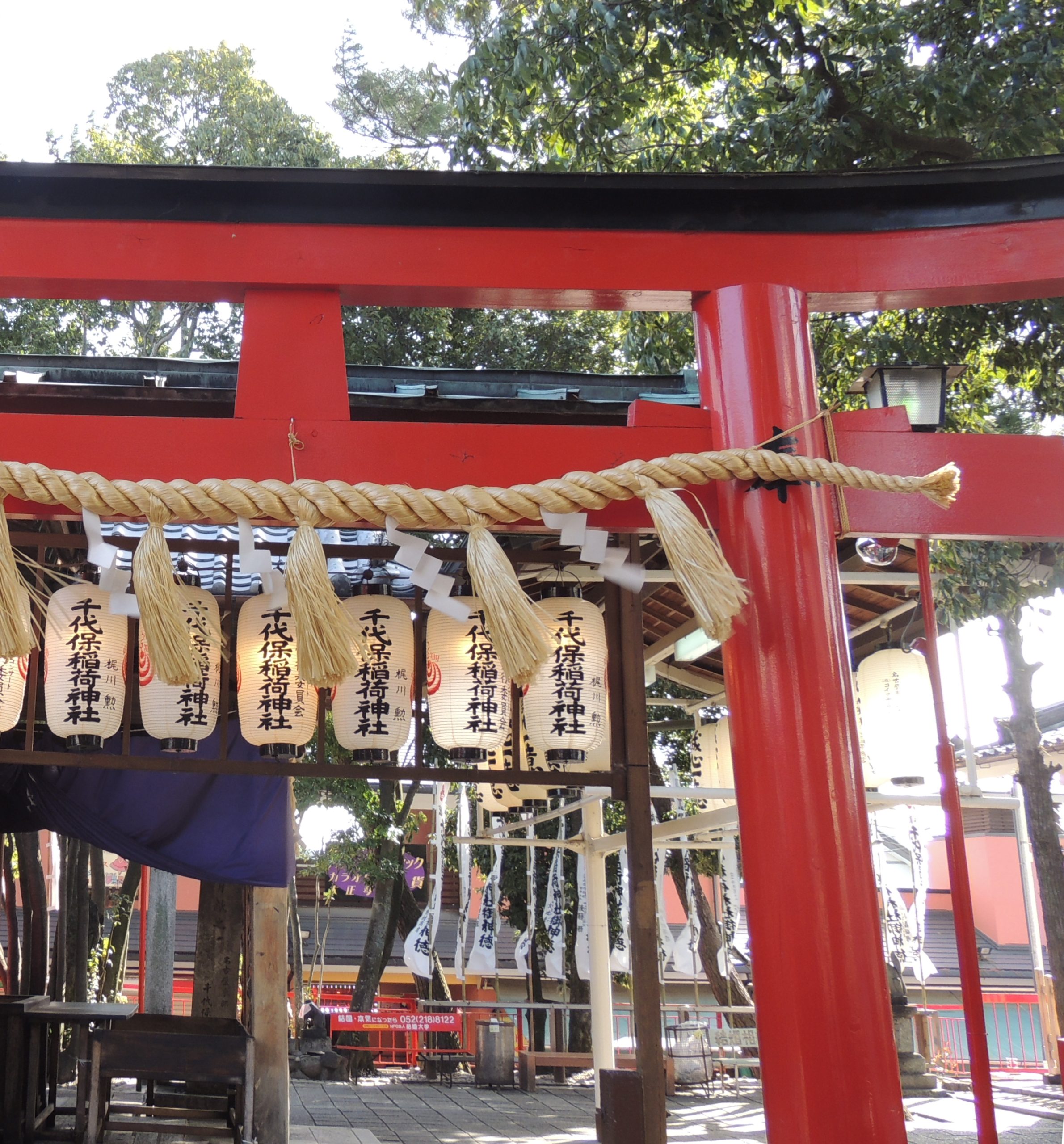「おちょぼさん」の愛称で親しまれている千代保稲荷神社は、商売繁盛・家内安全のご利益がある神社とされ、正月や月末は県内外からも多くの参拝者が訪れます。