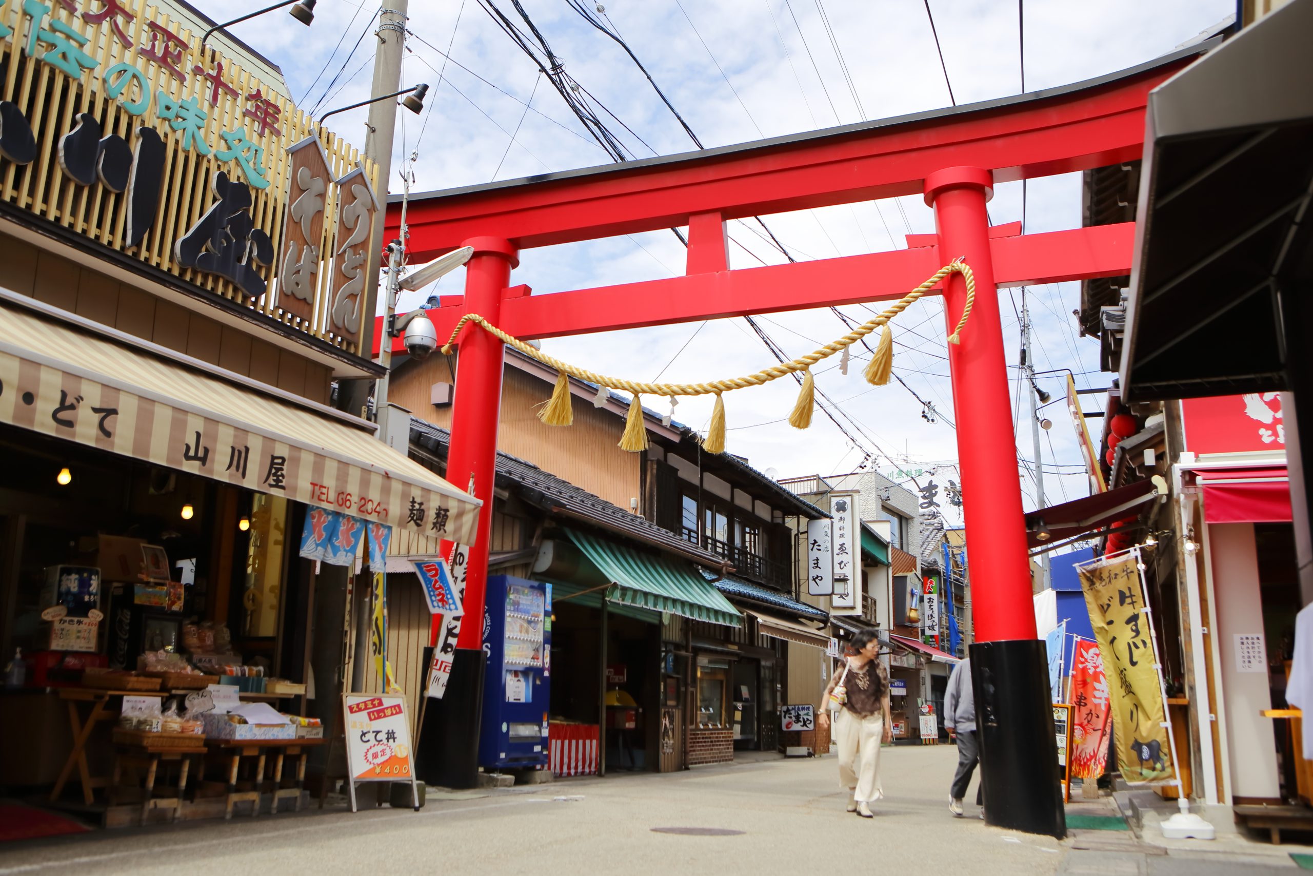 120軒ほどの店が軒を連ねる参道があり、毎日が縁日のようなにぎわいで、年間120万人以上の参拝者が訪れます。