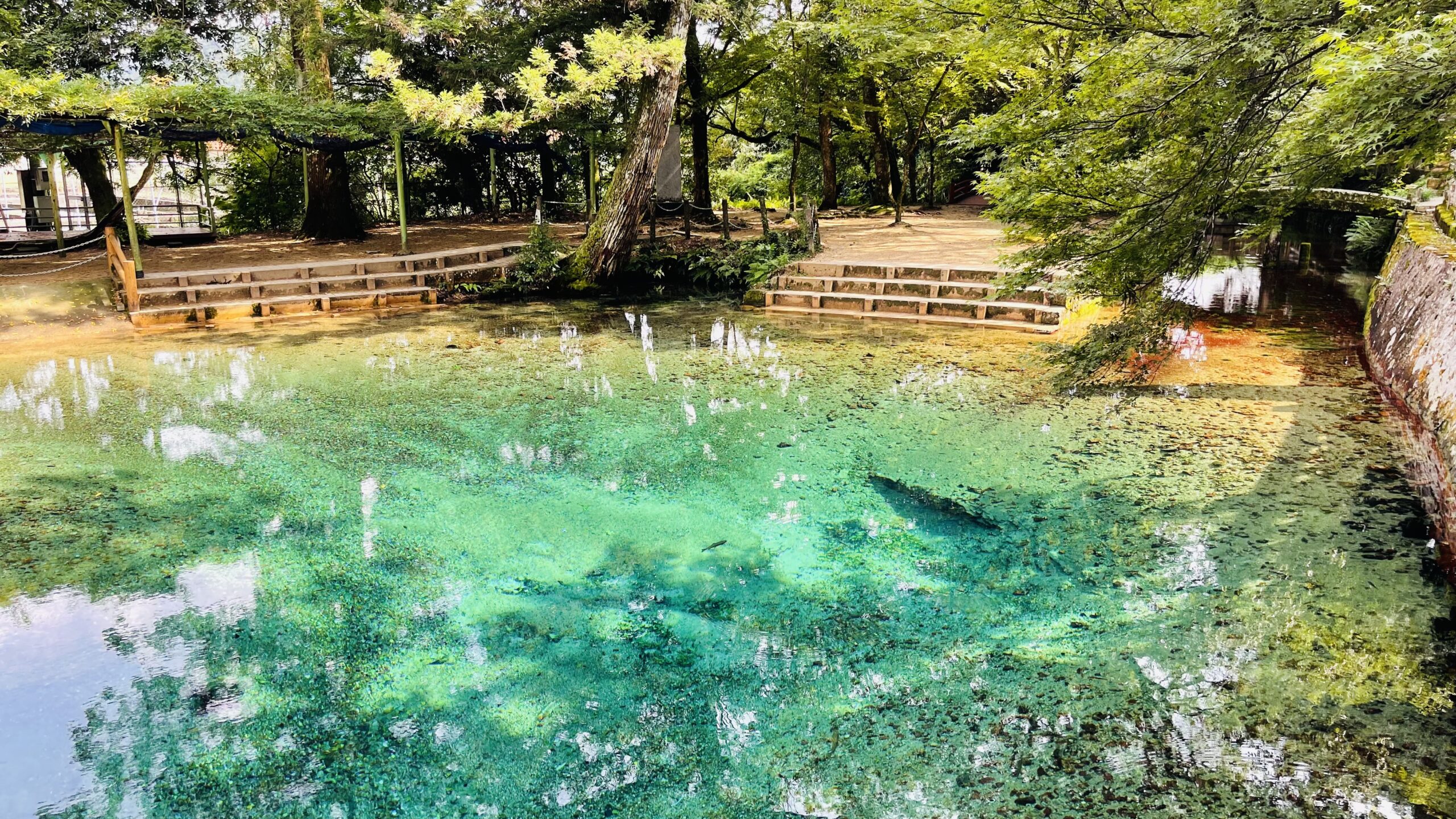 湧き水は飲むことができ、専用の給水所も設置されています。池の水を飲めば長寿が保たれ財宝が授かるという言い伝えがあり、肌につければ潤い保湿される美肌の水でもあり、体の中からも外からも美しく健康になれる名水と言えます。