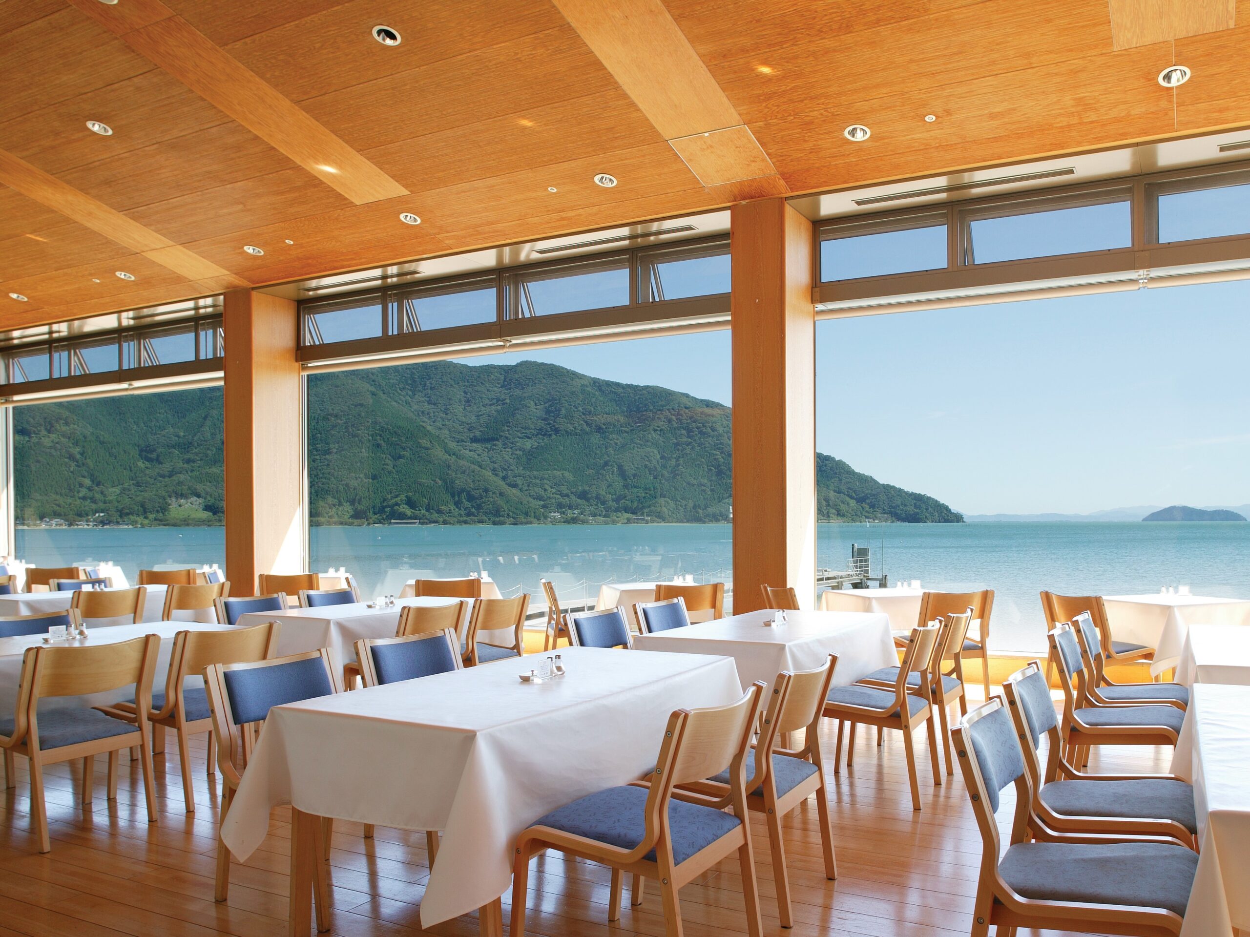 お食事はレストランの大きな窓から琵琶湖を眺めながら楽しんでいただきます。